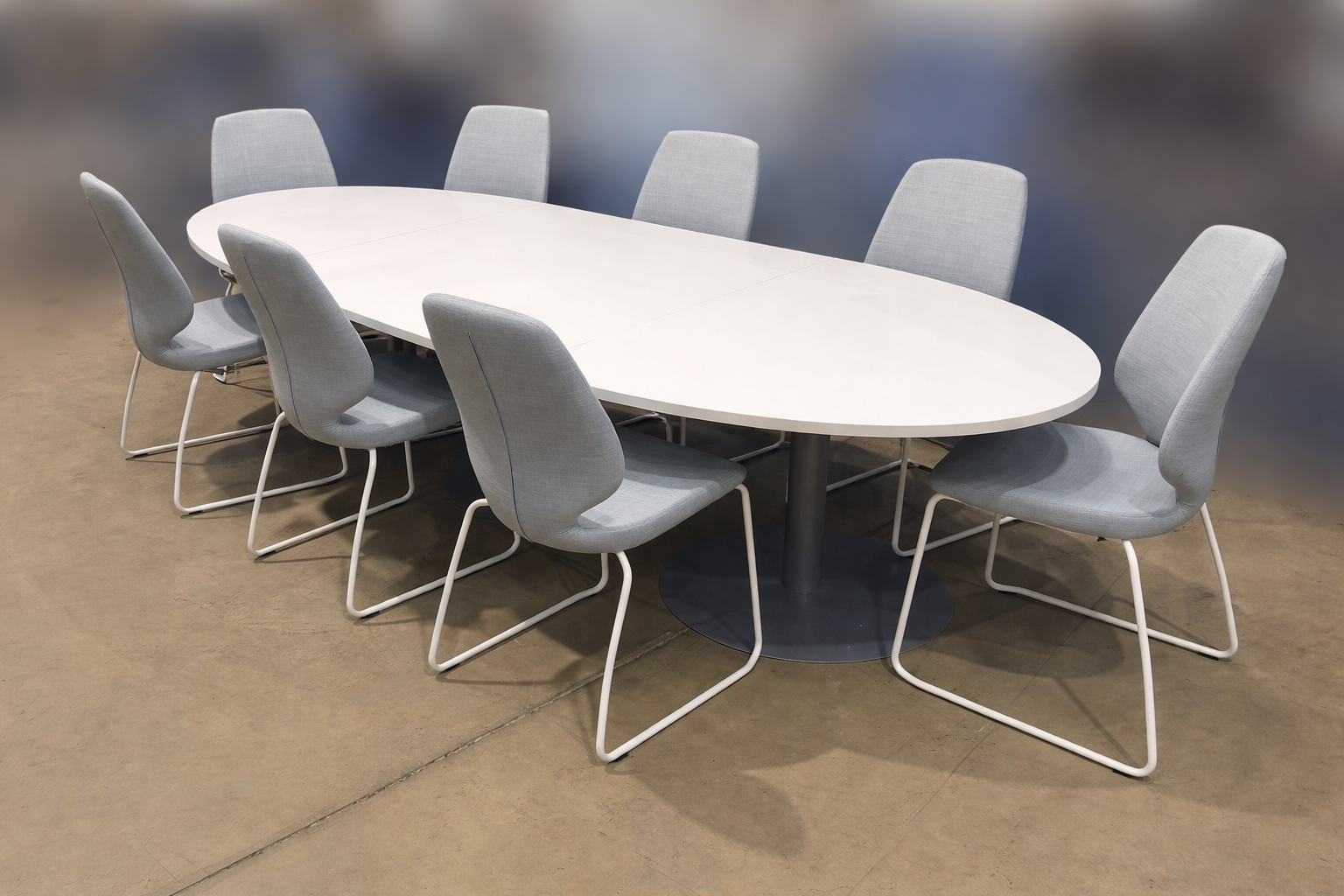 3Pc. Boardroom Table in White with 8 Kinnarps Chairs