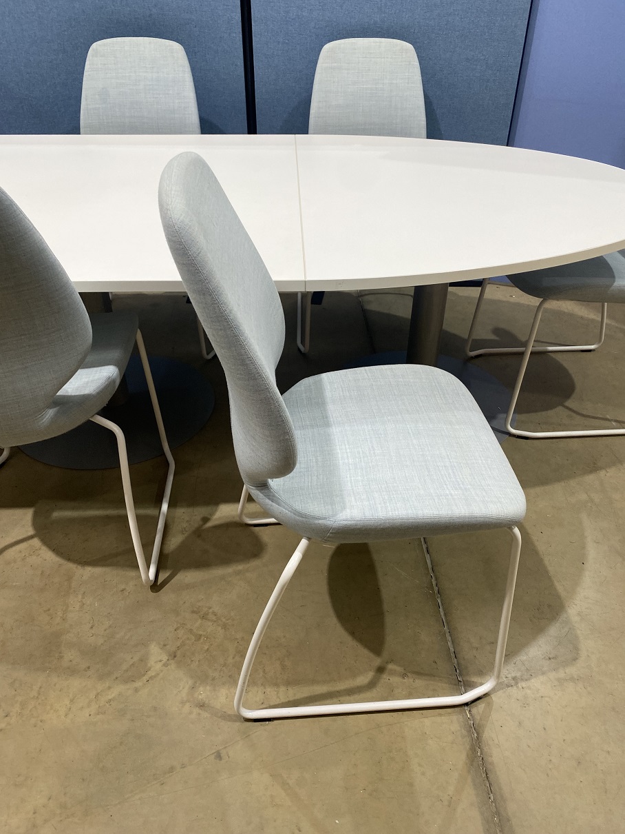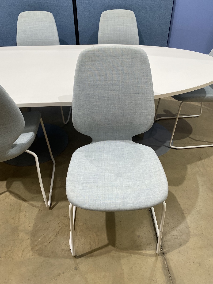 8 x Kinnarps chair in a light blue fabric with white cantilever frame