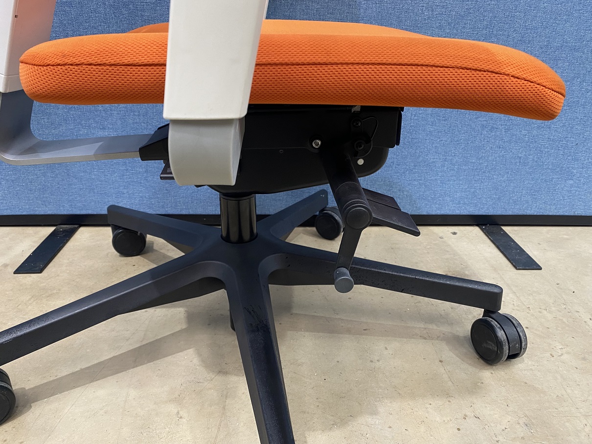 Used high back ergonomic task chair in an orange fabric finish with a white frame and black base. The chair comes with a host of adjustments assuring your comfort throughout the working day. These chairs are also being sold through our shop so we may have more than the quantity listed on the website. If you need more chairs than the quantity stated, please give us a call.