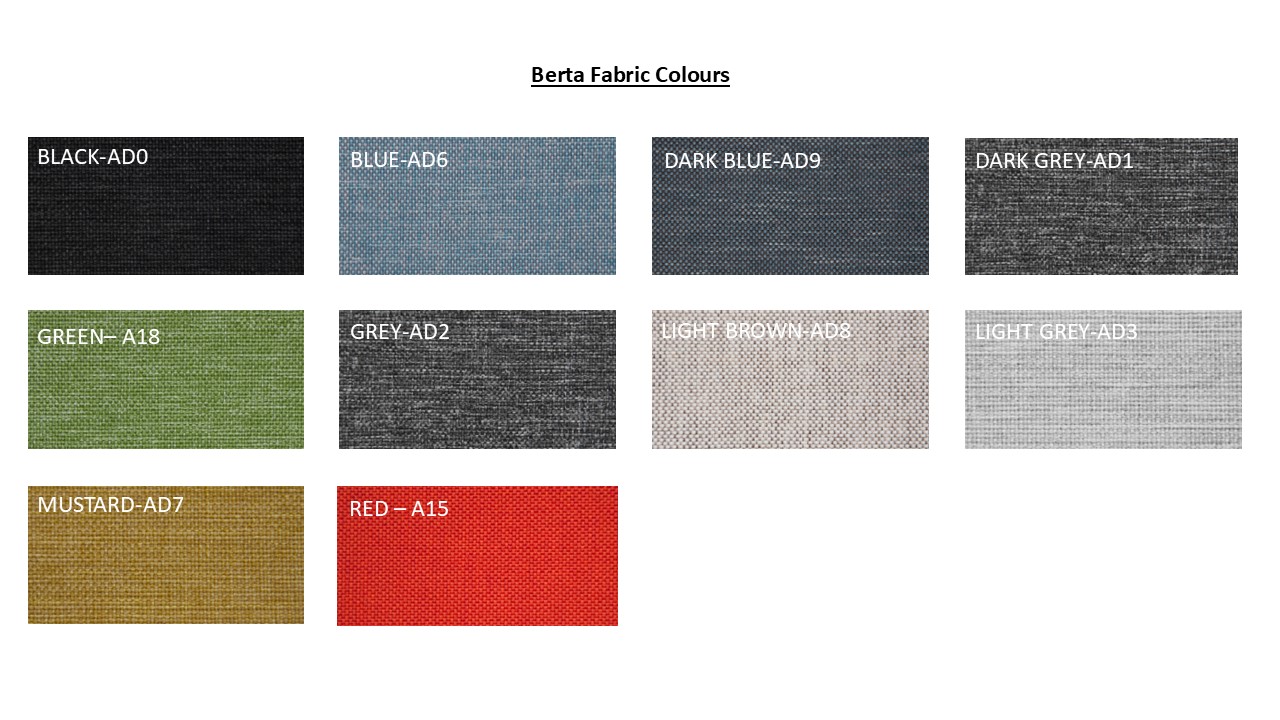 Black-AD0, Blue-AD6, Dark Blue-AD9, Dark Grey-AD1, Green-A18, Grey-AD2, Light Brown-AD8, Light Grey-AD3, Mustard-AD7, Red-A15
