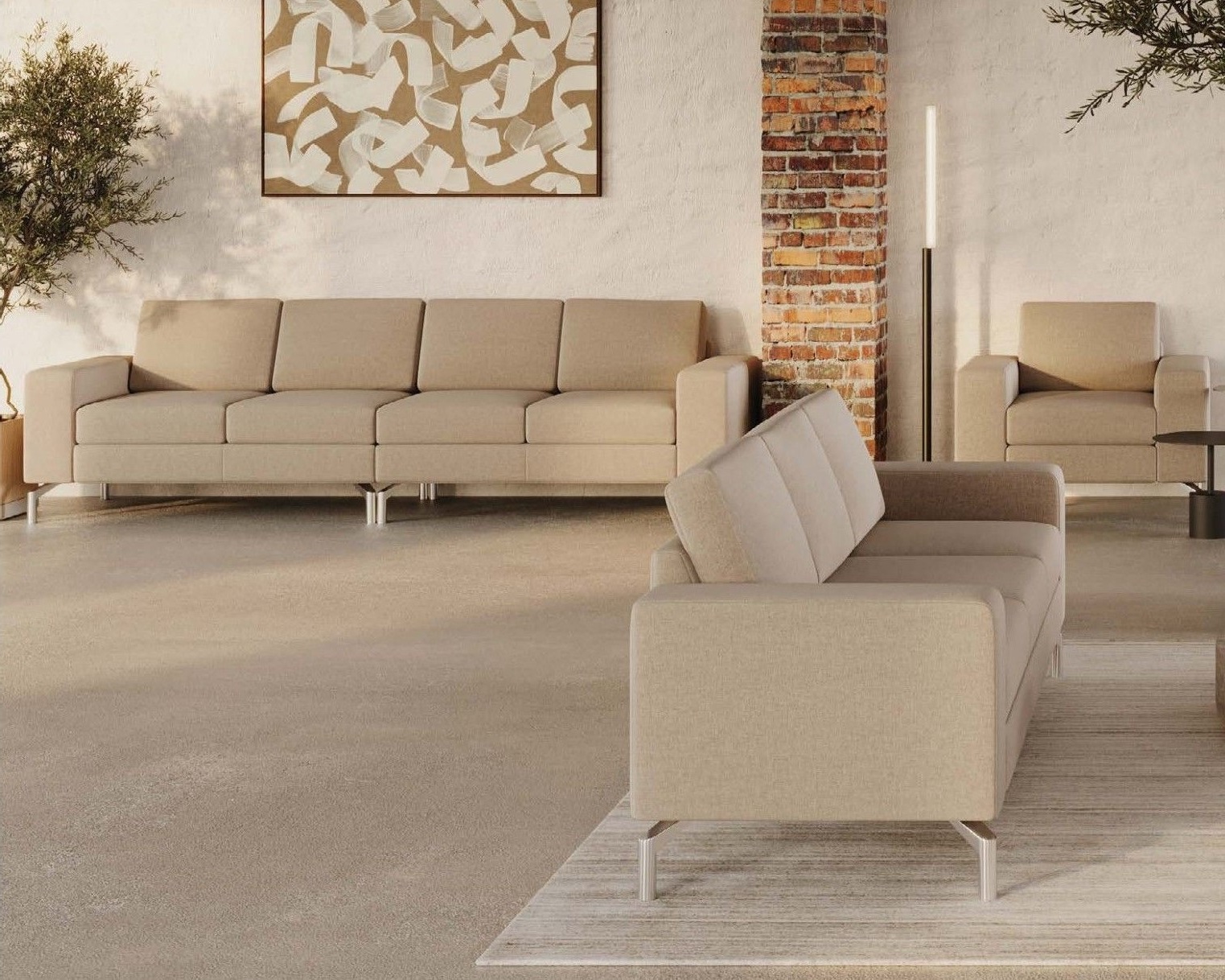 Introducing the Aura Soft Seating Range, designed for both home and business environments. Available in a choice of a single armchair, two-seat, three-seat, or four-seat sofa, this collection combines soft cushion comfort with high-quality craftsmanship. Each piece features a polished aluminum four-foot base, providing a stylish and sturdy foundation for a luxurious seating experience.