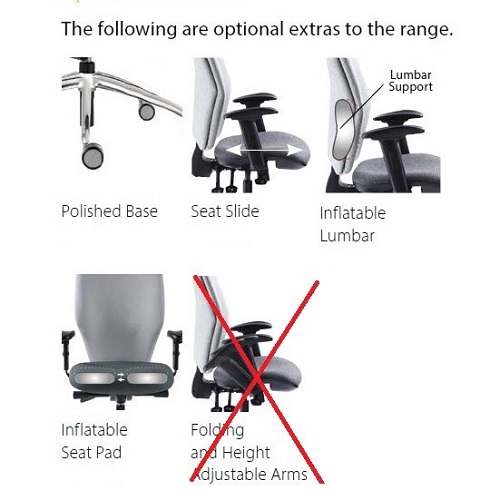 The Kona extra high back ergonomic chair not only comes with a host of adjustments as standard, the additional support options mean you can personalise the chair to your own liking. The extra high back also offers a much greater support. The additional inflatable lumbar compliments the contours of the back to enhance your seating comfort.