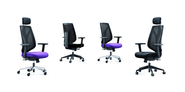 The Mentor office chair is a Contemporary high back mesh task chair with synchro mechanism, seat slide and sculptured height adjustable backrest. The high mesh back offers support for the user’s back whilst still allowing for the flexibility of movement.