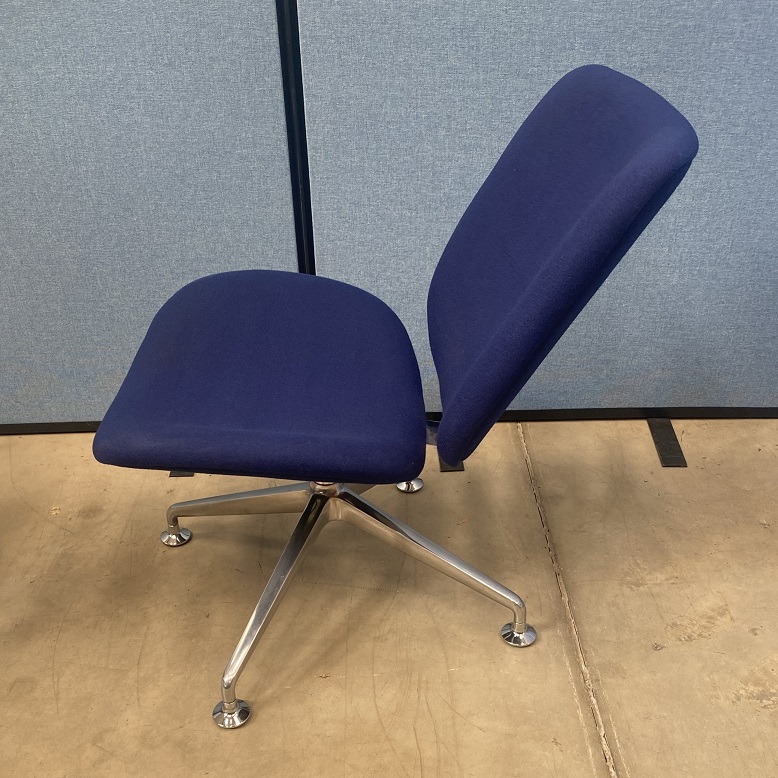 The Orangebox Track-02 lounge chair is the ideal option for creating a modern, comfortable seating area. Finished in a dark blue fabric with a polished metal base, the chairs are ideal for breakout, social seating and reception room environments. The chairs are designed to have a slight backward lean to their seat and back making them extremely comfortable.